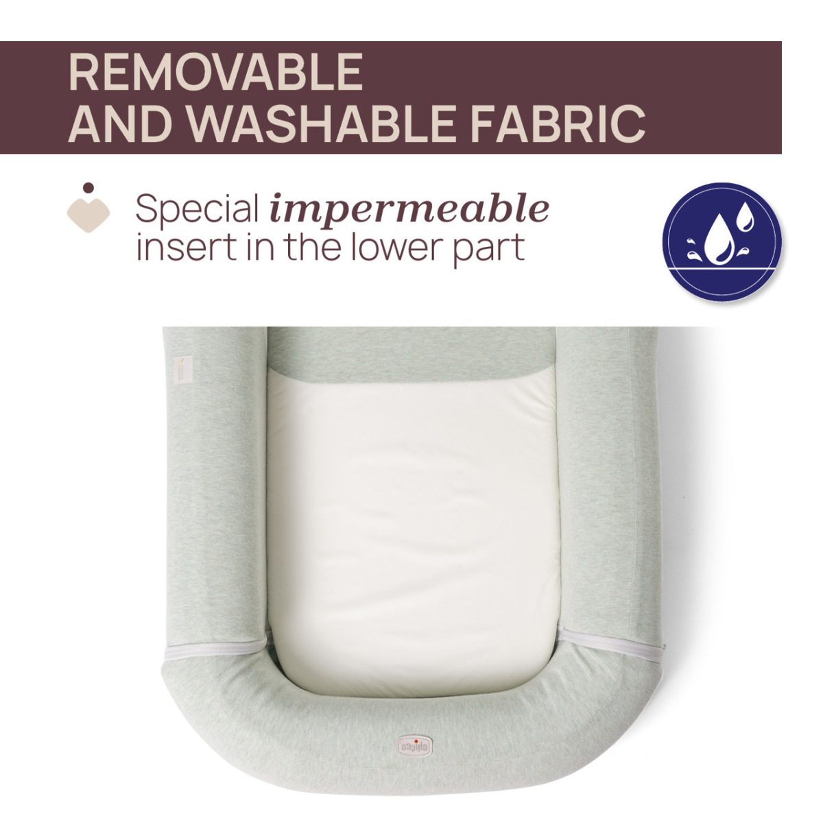 • Um inserto especial de tecido na área inferior do corpo evita que a almofada fique molhada e suja